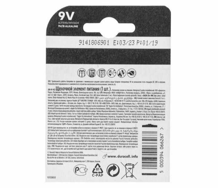 СохранитьБатарейка Duracell Basic 9V 6LR61/MN1604 интересное: