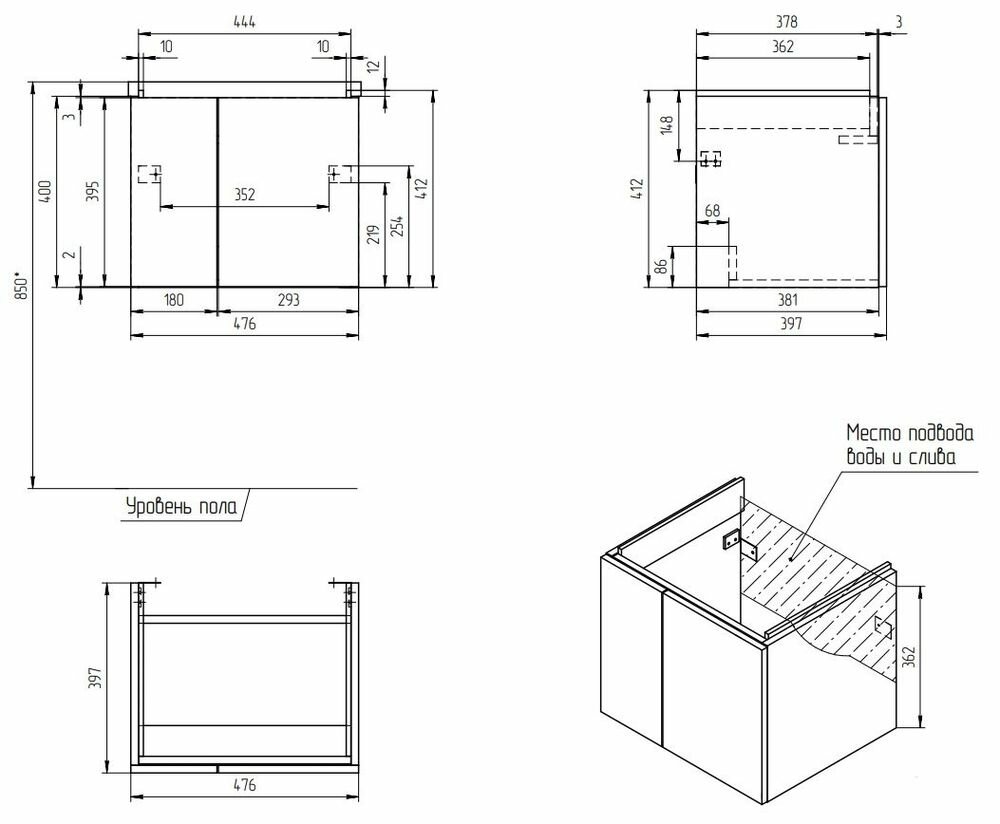 | Назначение | тумба для ванной комнаты / под раковину |