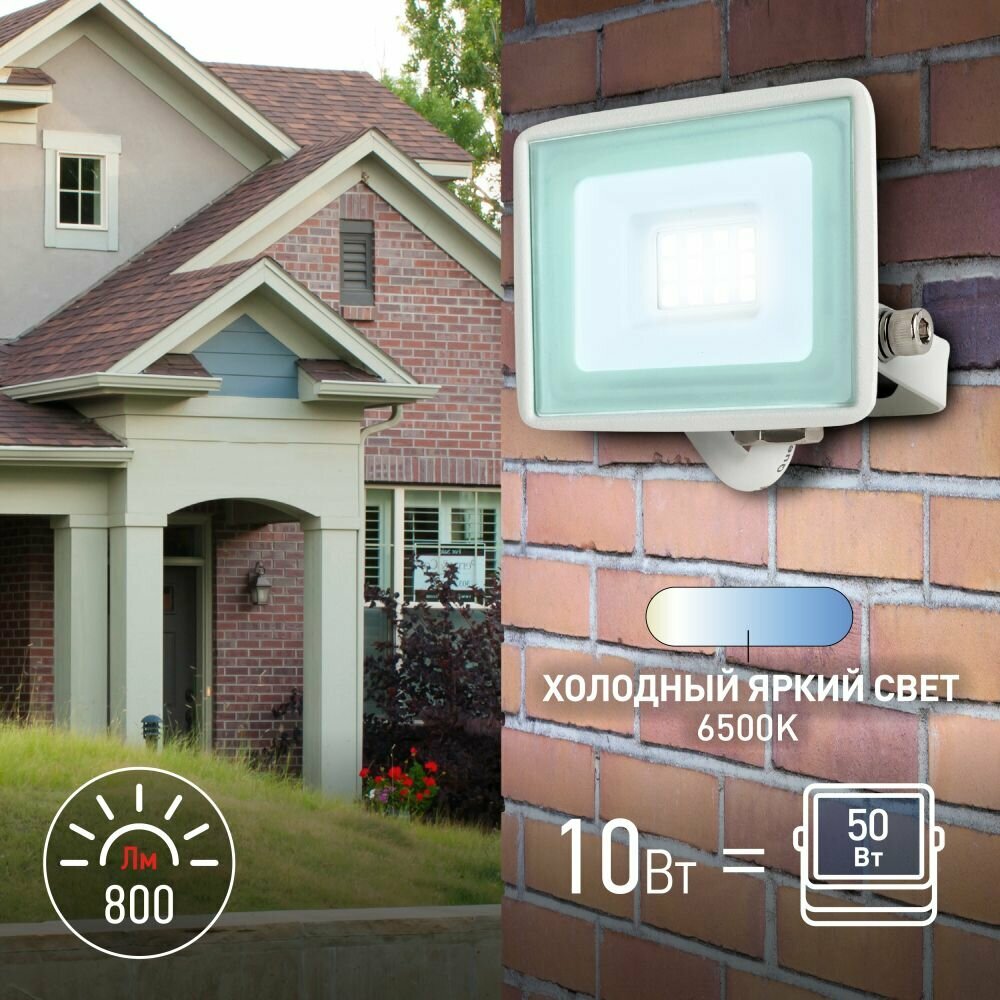 Прожектор светодиодный уличный ЭРА LPR-023-W-65K-010 10Вт 6500K 800Лм IP65 белый арт. Б0054639 (1 шт.)