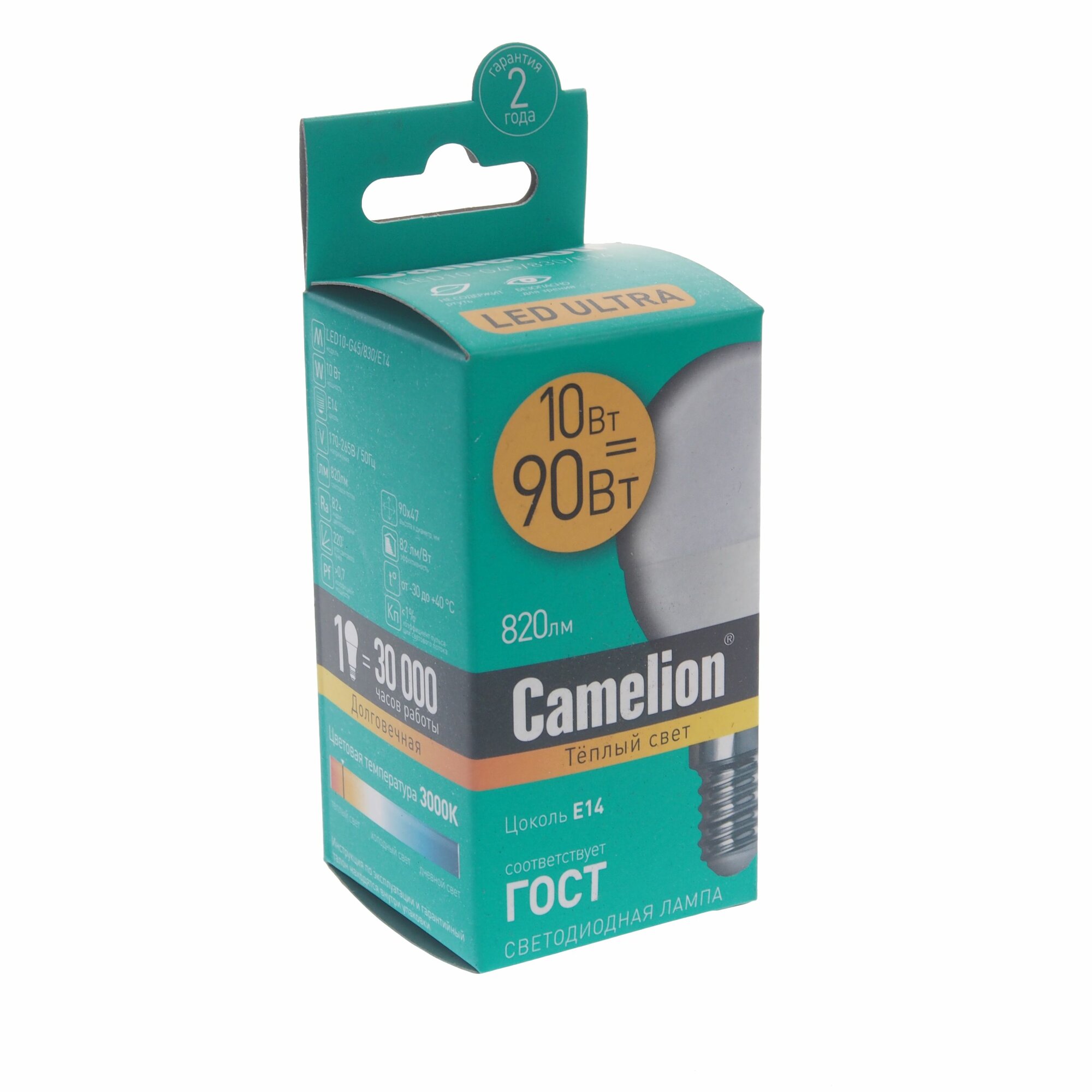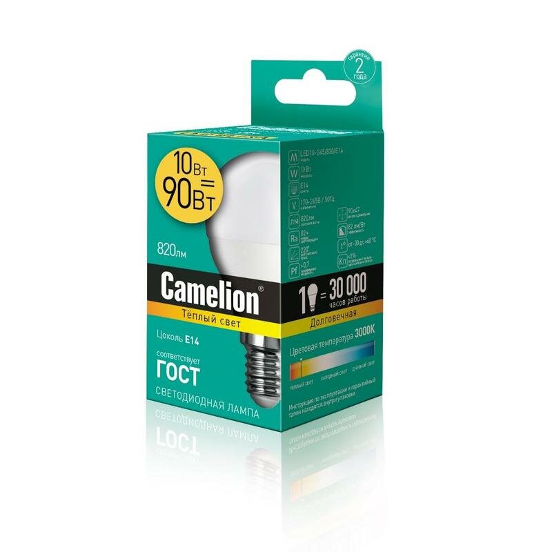 Лампочка CAMELION LED10-G45/830/E14 E14, 10 Вт, белый
