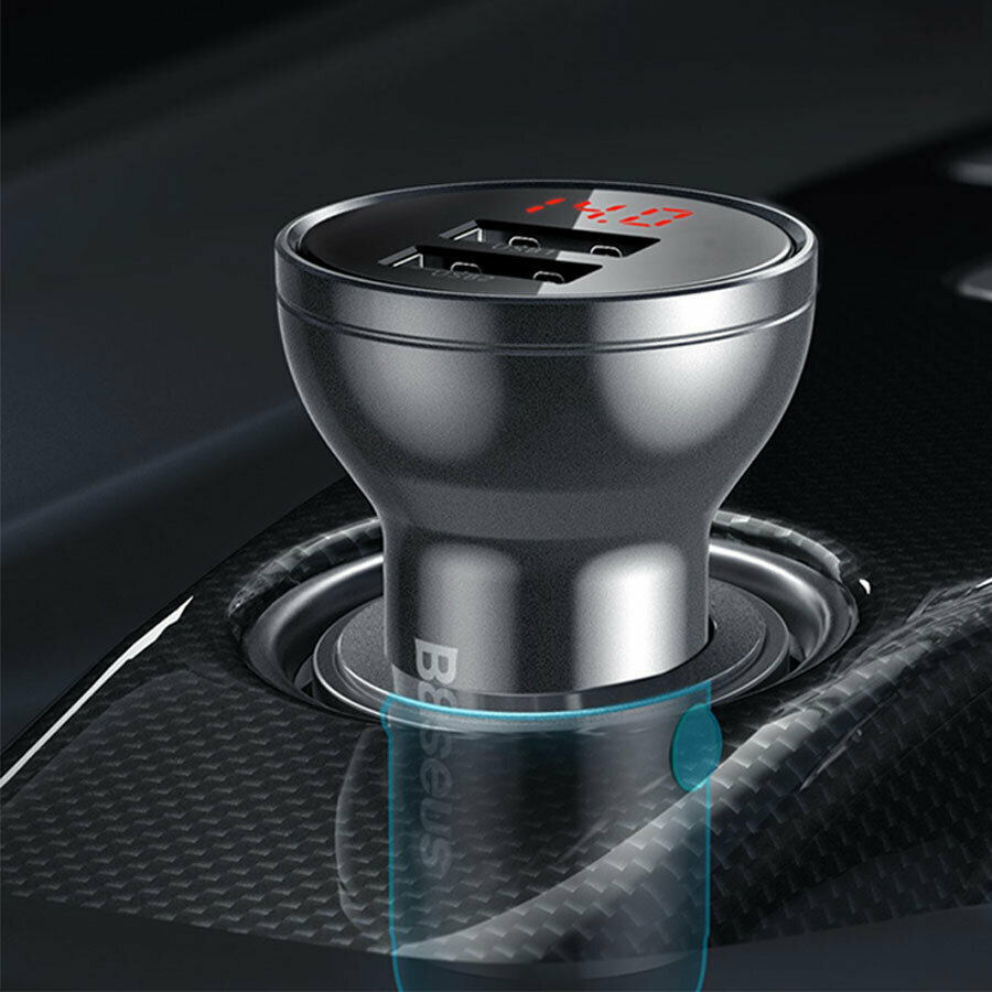 Автомобильное зарядное устройство BASEUS Digital Display Dual, 2*USB, 2.4A, 24W, серый, дисплей