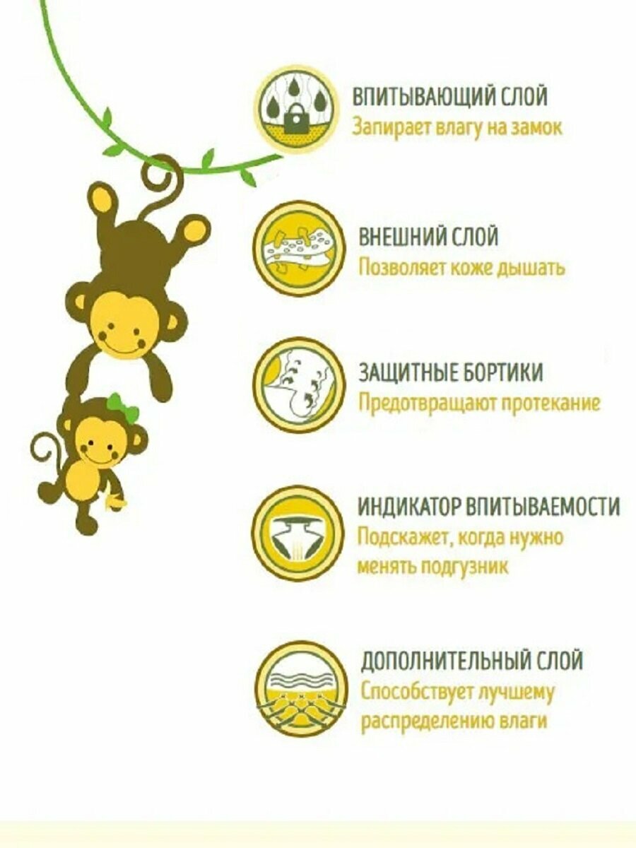 | Особенности | боковые внутренние бортики / индикатор наполнения / многоразовые застежки-липучки / рельефная внутренняя поверхность / эластичные резинки вокруг ножек / эластичный пояс |