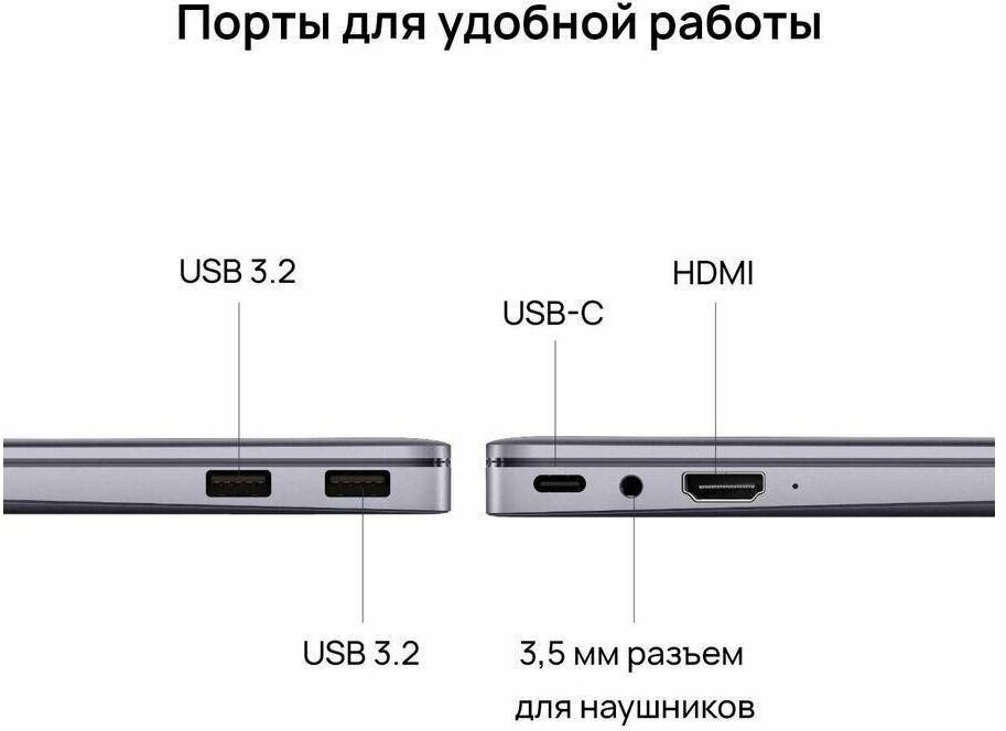 Ноутбук Huawei MateBook D14 AMD Ryzen 5 5500U/14'' 2160x1440 IPS 300 nits/16Gb/512Gb SSD/W11 Home/Space Gray (KLVL-W56W)