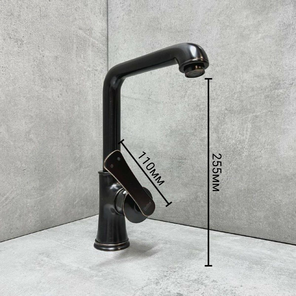 Смеситель для кухни Haiba HB70181-7, высокий, поворотный излив с аэратором, материал: латунь, цвет: черный/медь, на гайке.