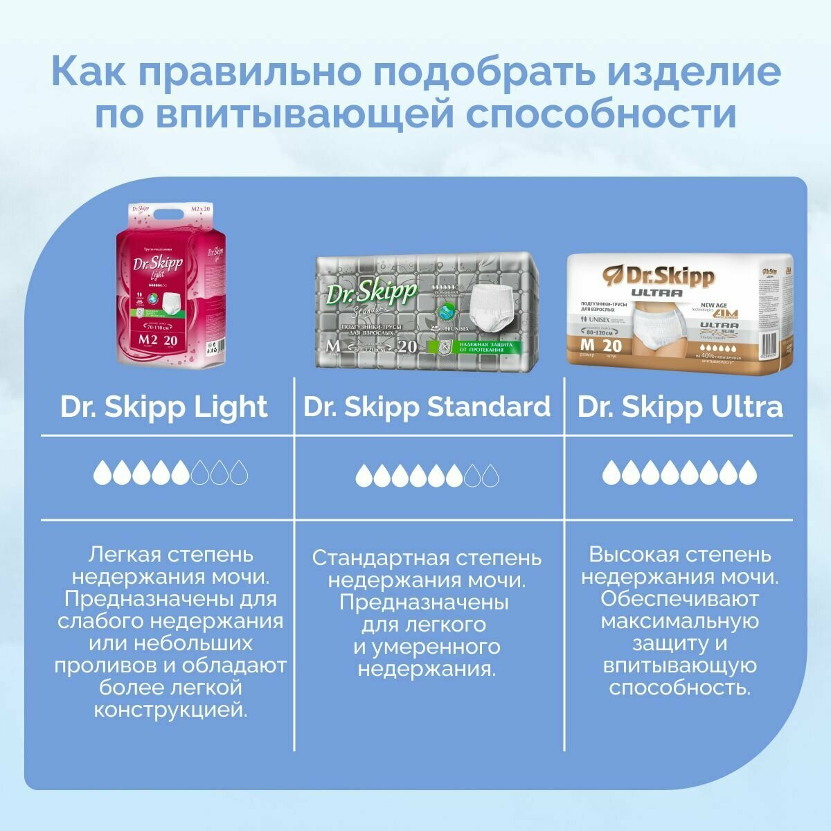 Ниже Вы можете прочитать отзывы на Подгузники-трусы для взрослых Dr. Skipp Standard М-2, 20 шт., ознакомится с подробными характеристиками, посмотреть интересные обзоры и фотографии на Подгузники-трусы для взрослых Dr. Skipp Standard М-2, 20 шт..