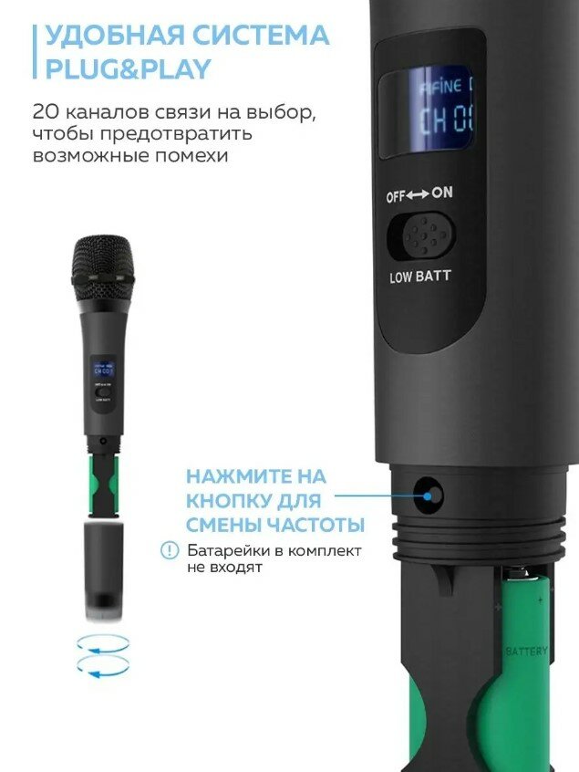 | Дополнительная информация | подключается посредством радиоканала UHF; 20 частотных каналов |