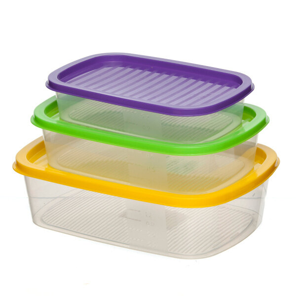 Набор контейнеров пищевых 3шт 0,5; 1; 1,6л BioFresh прямоуг, цвет Микс ИскраПласт 9171045 .