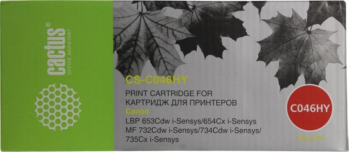 Тонер Картридж CACTUS CS-046 H желтый (5000стр.) для Canon LBP 653Cdw/654Cx/MF732Cdw/734Cdw/735C