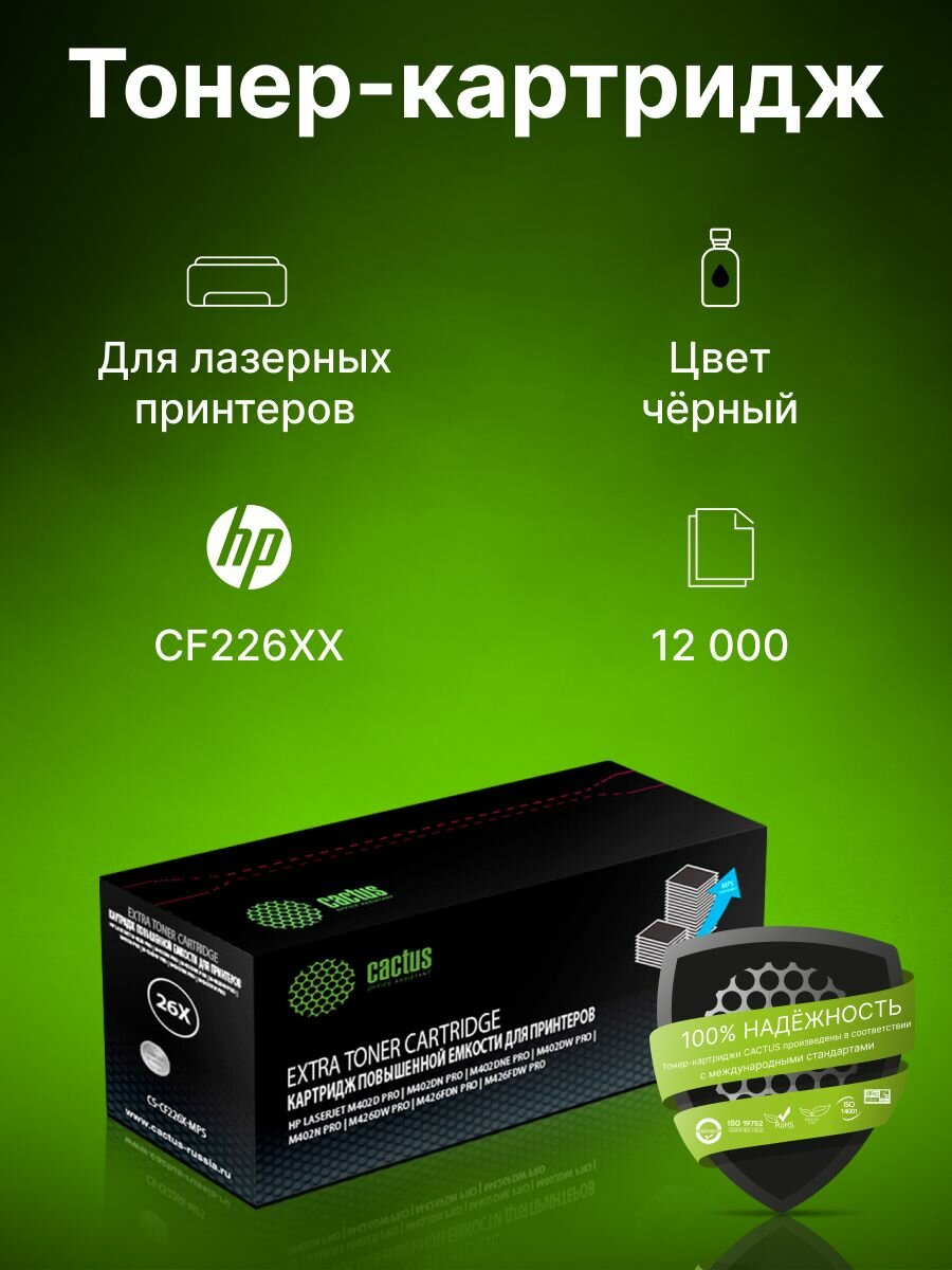 Картридж Cactus CS-CF226X-MPS, черный, 12000 страниц, совместимый для LJ M402d/M402n/M426dw/M426fdn/M426fdw