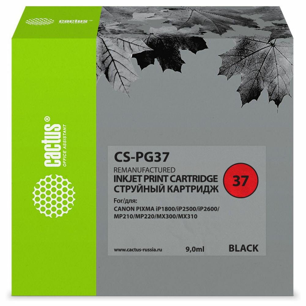 Картридж струйный Cactus CS-PG37 черный (9мл) для Canon Pixma iP1800/iP1900/iP2500/iP2600/MP140/MP190/MP210/MP220/MP470/MX300/MX310