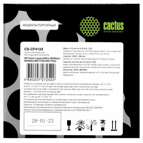 Картридж лазерный Cactus CS-CF413X пурпурный (5000 страниц) для HP HP CLJ Pro M452dn/M452dw/M477fdn/M477fdw