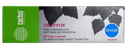 Картридж лазерный CACTUS (CS-CF413X) для HP LaserJet Pro M477fdn/fdw/M452dn/nw, пурпурный, ресурс 5000 стр.