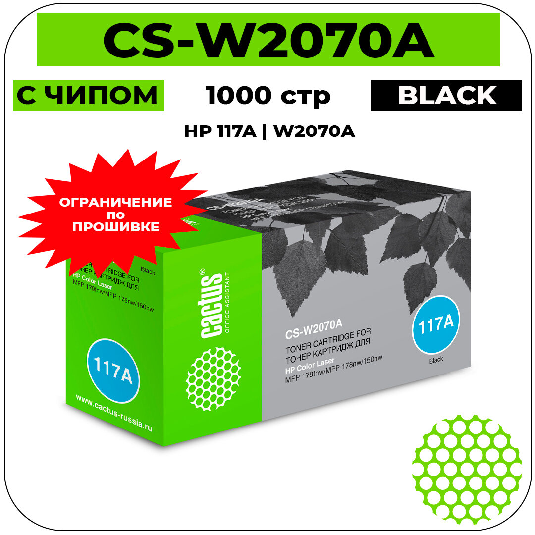 Картридж лазерный Cactus CS-W2070A W2070A (есть ограничения по прошивке) черный (700стр.) для HP Color Laser 150a/150nw/178nw MFP/179fnw MFP