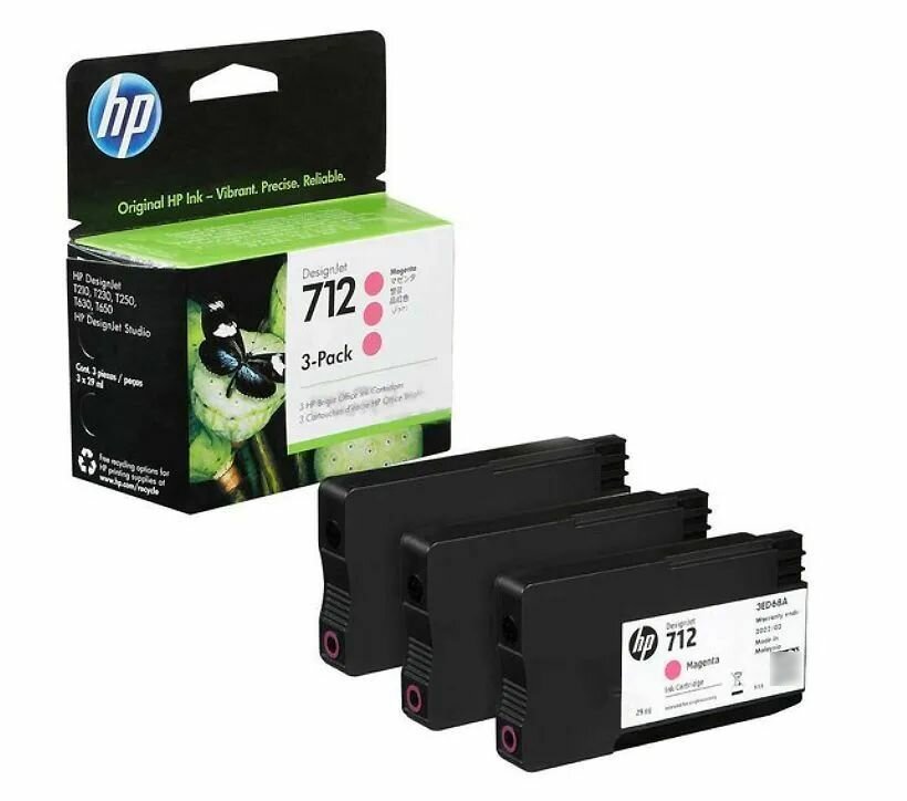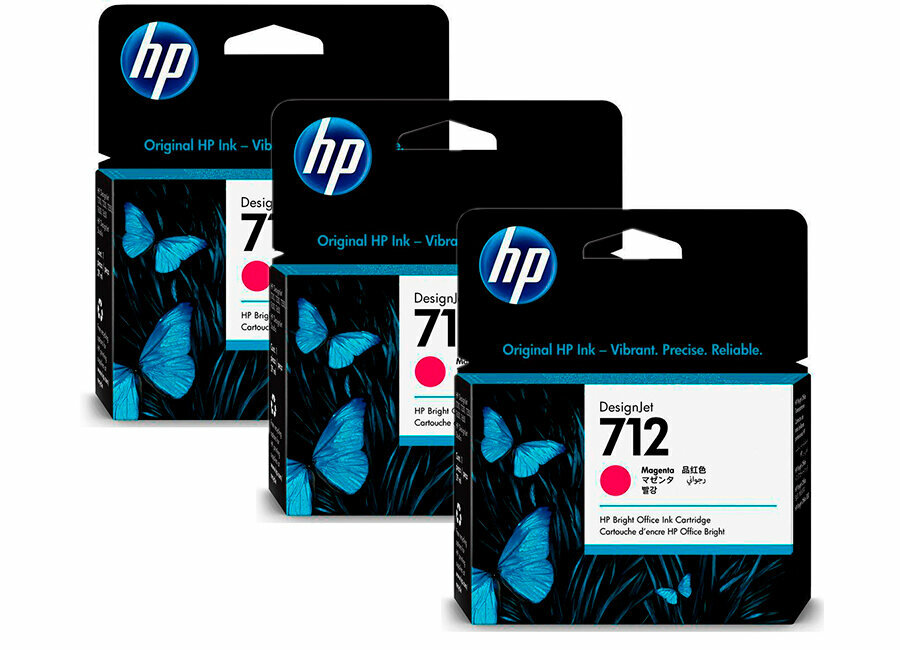 Струйный картридж HP 712 29-ml, 3 шт. в упаковке, пурпурный (3ED78A)