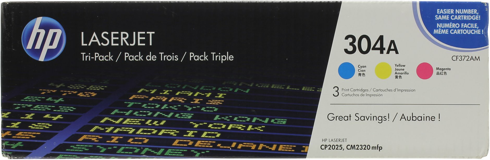 Расходный материал HP HP 304A лазерные картриджи HP LaserJet, Голубой/Пурпурный/Желтый, упаковка 3 шт. CF372AM