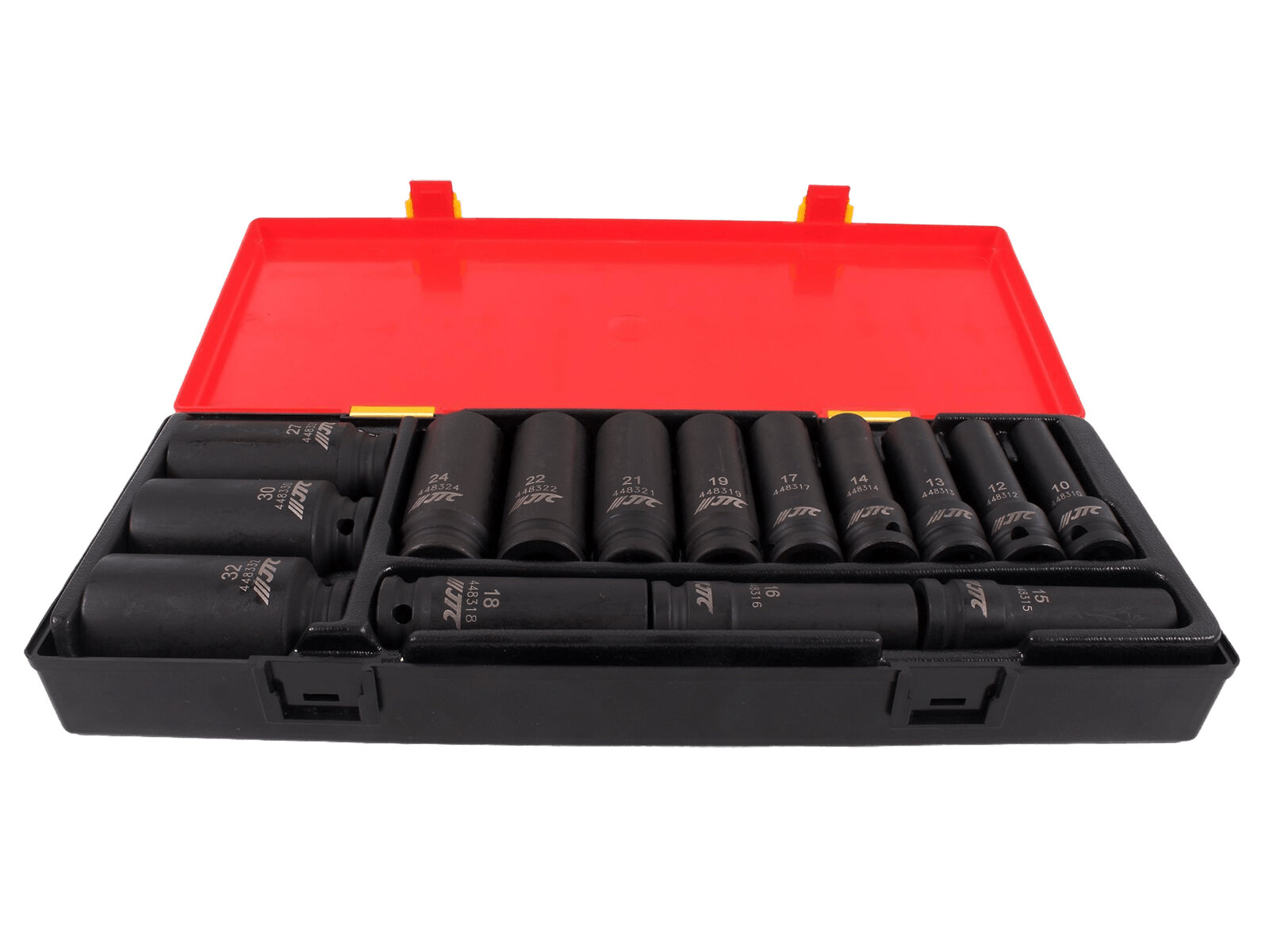 Набор головок торцевых глубоких ударных 12-гранных 1/2" 10-32мм 15шт JTC-K4153