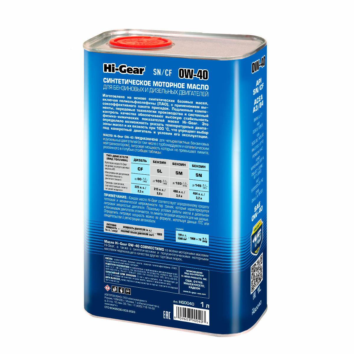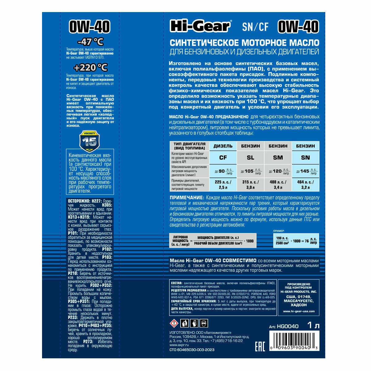 Моторное масло Hi-Gear 0W40 SN/CF, 1л (арт. HG0040) HG0040