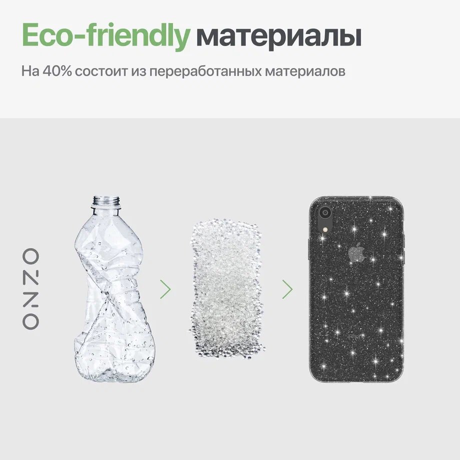 Чехол для iPhone XR / Чехол на Айфон XR, темно-прозрачный, с блестками, ONZO