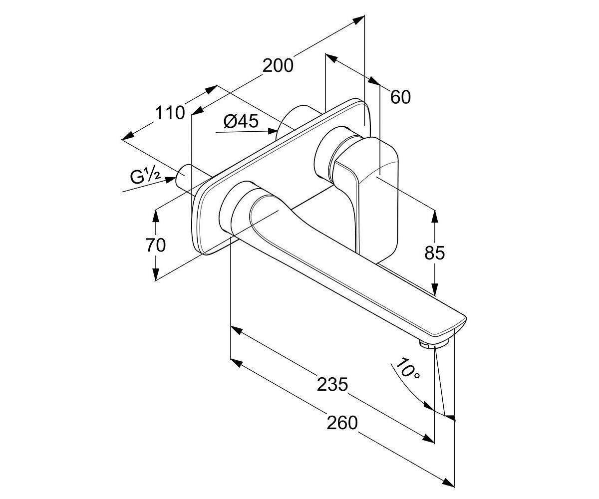 Смеситель настенный KLUDI AMEO для умывальника, внешняя монтажная часть, длина излива 235 мм, хром (