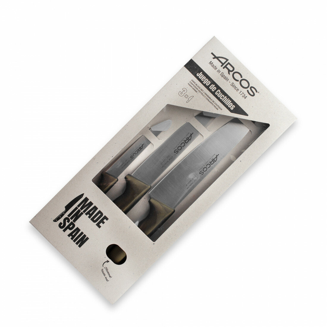 Набор из 3-х кухонных ножей в коробке Niza, цвет коричневый, сталь кованая, Arcos, Испания, 818046