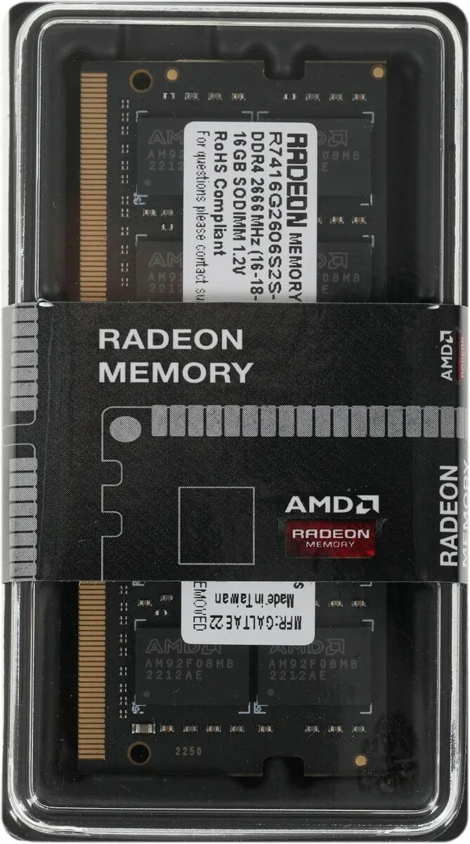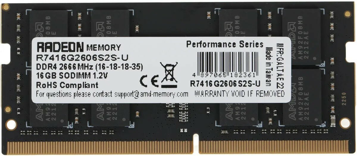 Оперативная память AMD Radeon R7 Performance Series R7416G2606S2S-U DDR4 - 1x 16ГБ 2666МГц, для ноутбуков (SO-DIMM), Ret