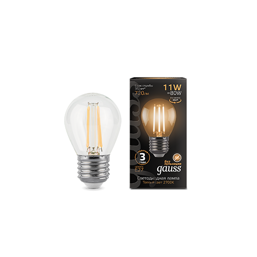 Лампа филаментная GAUSS E27, шар, 11Вт, одна шт. [105802111]
