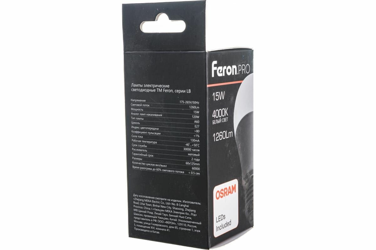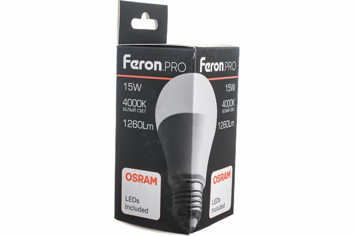 Светодиодная LED лампа Feron.PRO ЛОН A60 E27 15W(1260lm) 4000K 4K матовый 125x60 OSRAM LED LB-1015 38036 (упаковка 10 штук)
