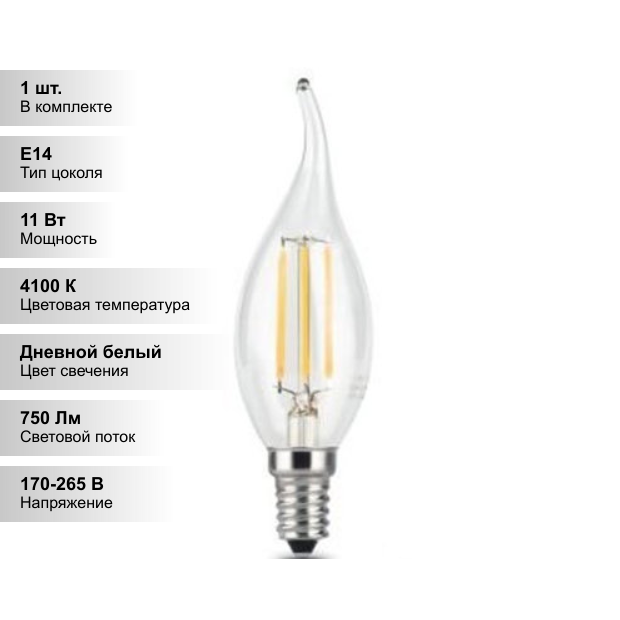Gauss Лампа Gauss LED Filament Свеча на ветру E14 11W 750lm 4100K 104801211