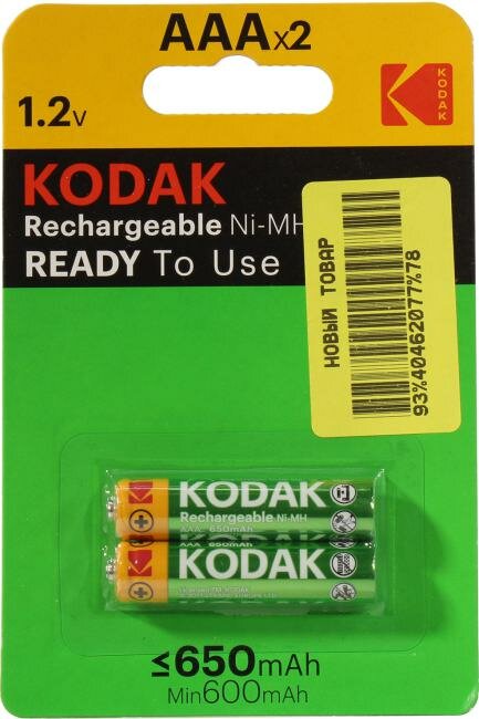 Аккумулятор Kodak, Ni-Mh, Aaa, Hr03-2bl, 1.2В, 650 мАч, блистер, 2 шт. Kodak 1804446