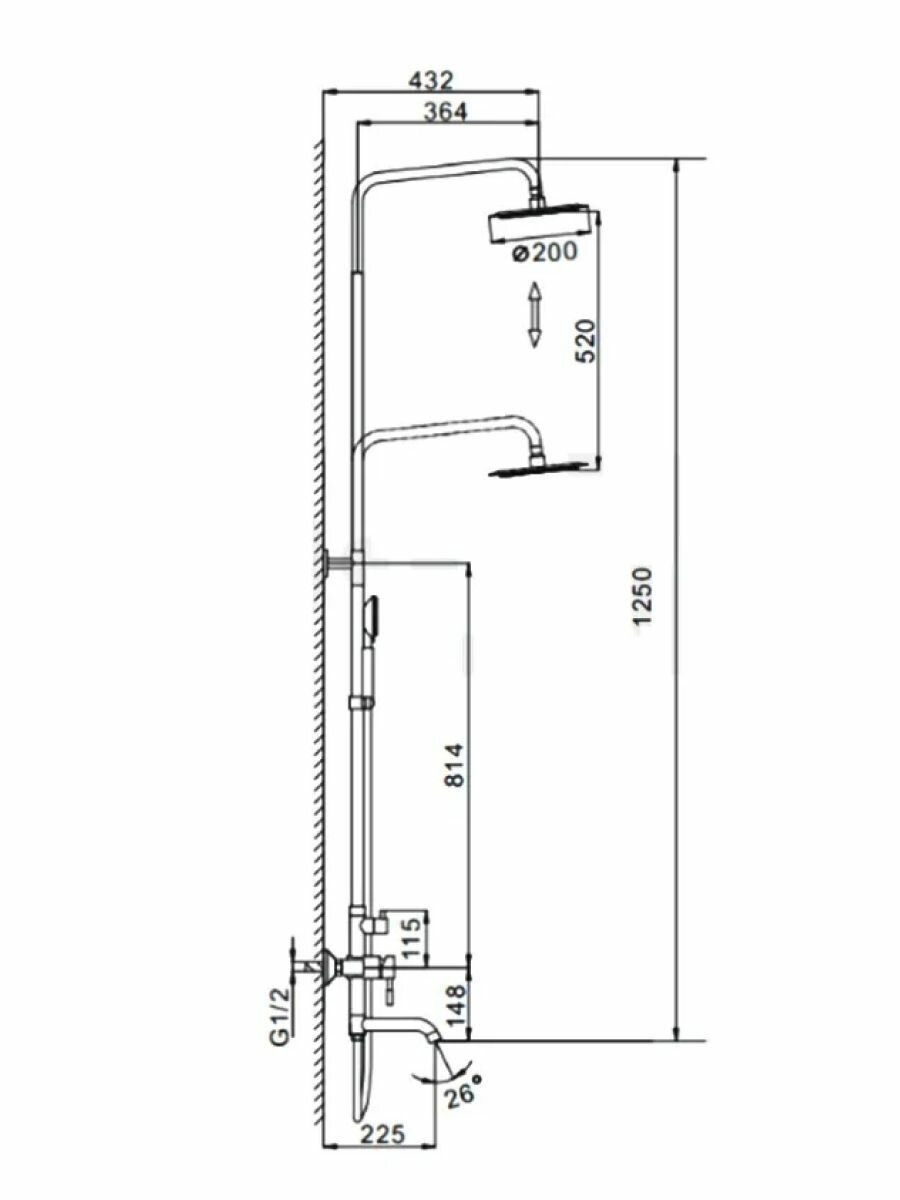 | Комплектация | Смеситель; Душевая стойка; Верхний душ; Кронштейн для верхнего душа; Держатель лейки; Душевая лейка; Душевой шланг 1,5м.; Крепления; Отражатели; Эксцентрики |