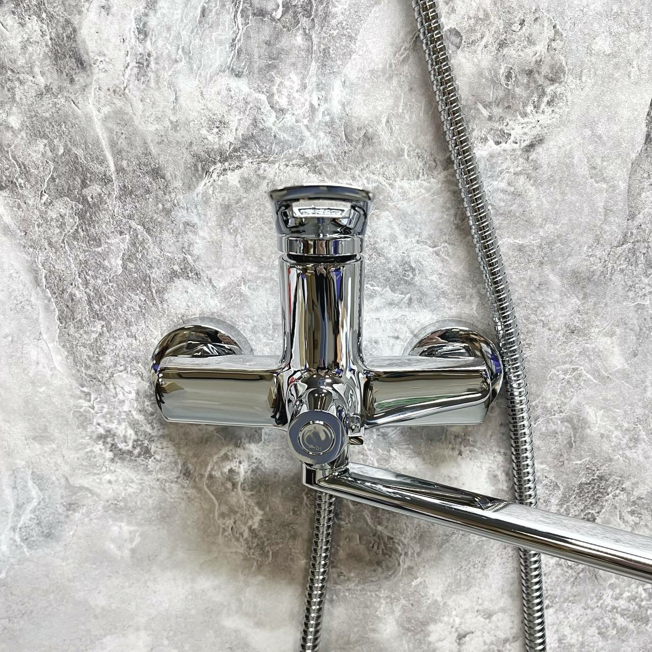 Смеситель для ванны Haiba HB22595 с длинным, поворотным изливом и переключателем в корпусе, хром.