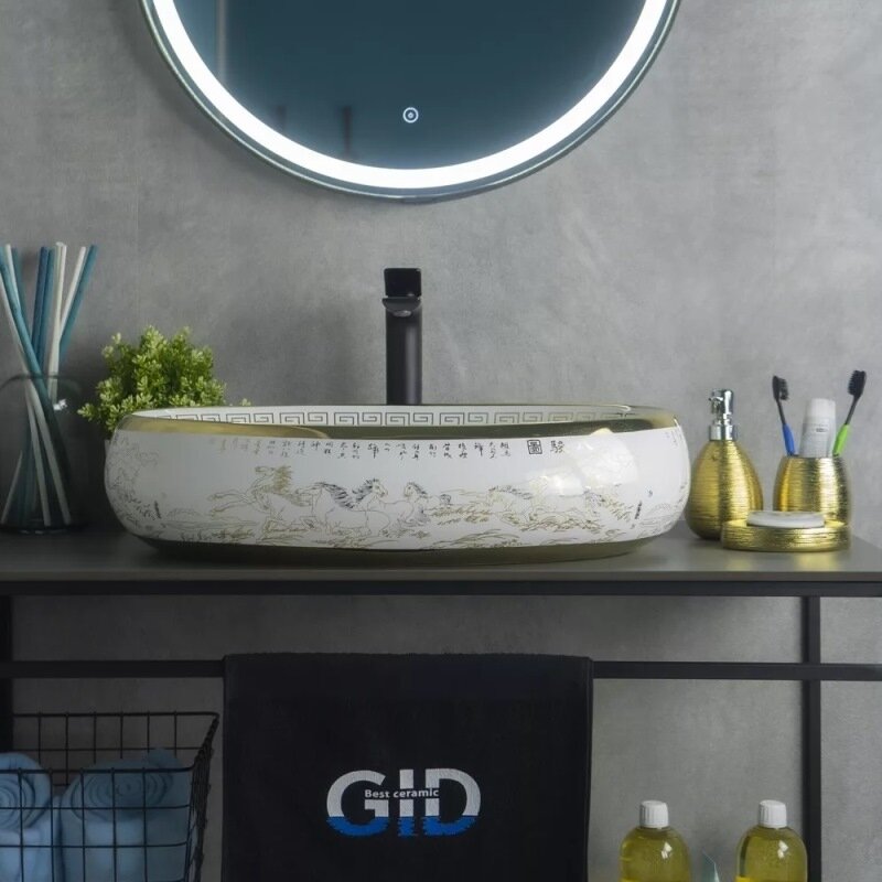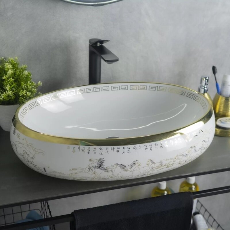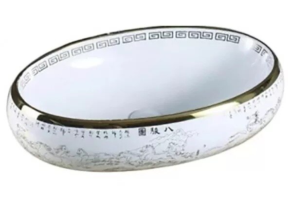 Раковина Gid Nc472 59x40x16 см накладная белая с золотым
