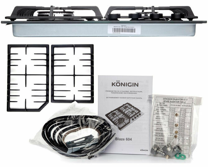 Газовая поверхность Konigin Blaze 604 BKGW, 60 см, решетки: чугунные, черный, Турция