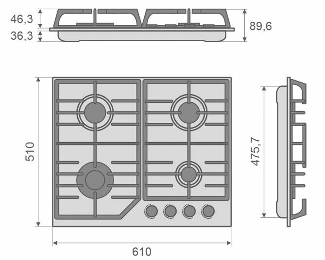 Дизайн классный, чёрного цвета, как раз вписалась в мою кухню. Удобен в использовании, 4 конфорки с разными диаметрами и соответствующими ручками-регуляторами серебристого цвета. Панель моется хорошо, царапины и разводы не остаются или они не заметны вообще. Покупкой довольна. Минусов не нашла. |