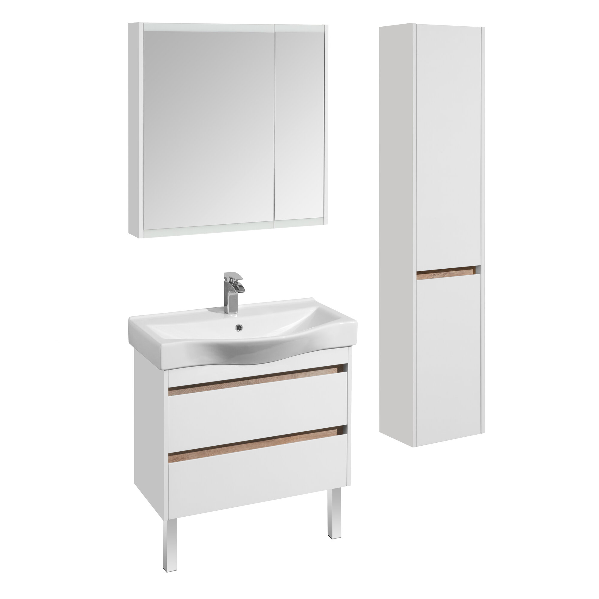 Тумба под умывальник AQUATON Нортон 80 1A248901NT010 760x357x554 подвесная, 2 ящ, белый/дуб эндгрейн