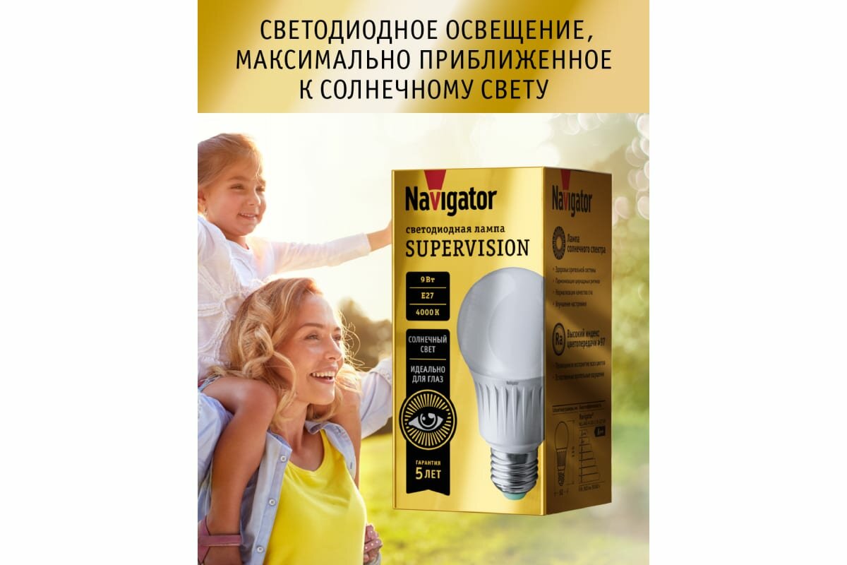 Лампа светодиодная солнечного спектра Navigator 80 549 Supervision Е27, 9 Вт, груша, дневного света 4000К, 1 шт.