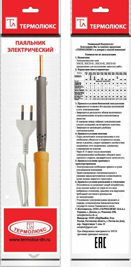 СохранитьПаяльник термолюкс ЭПСН-01-65/220, 65 Вт интересное: