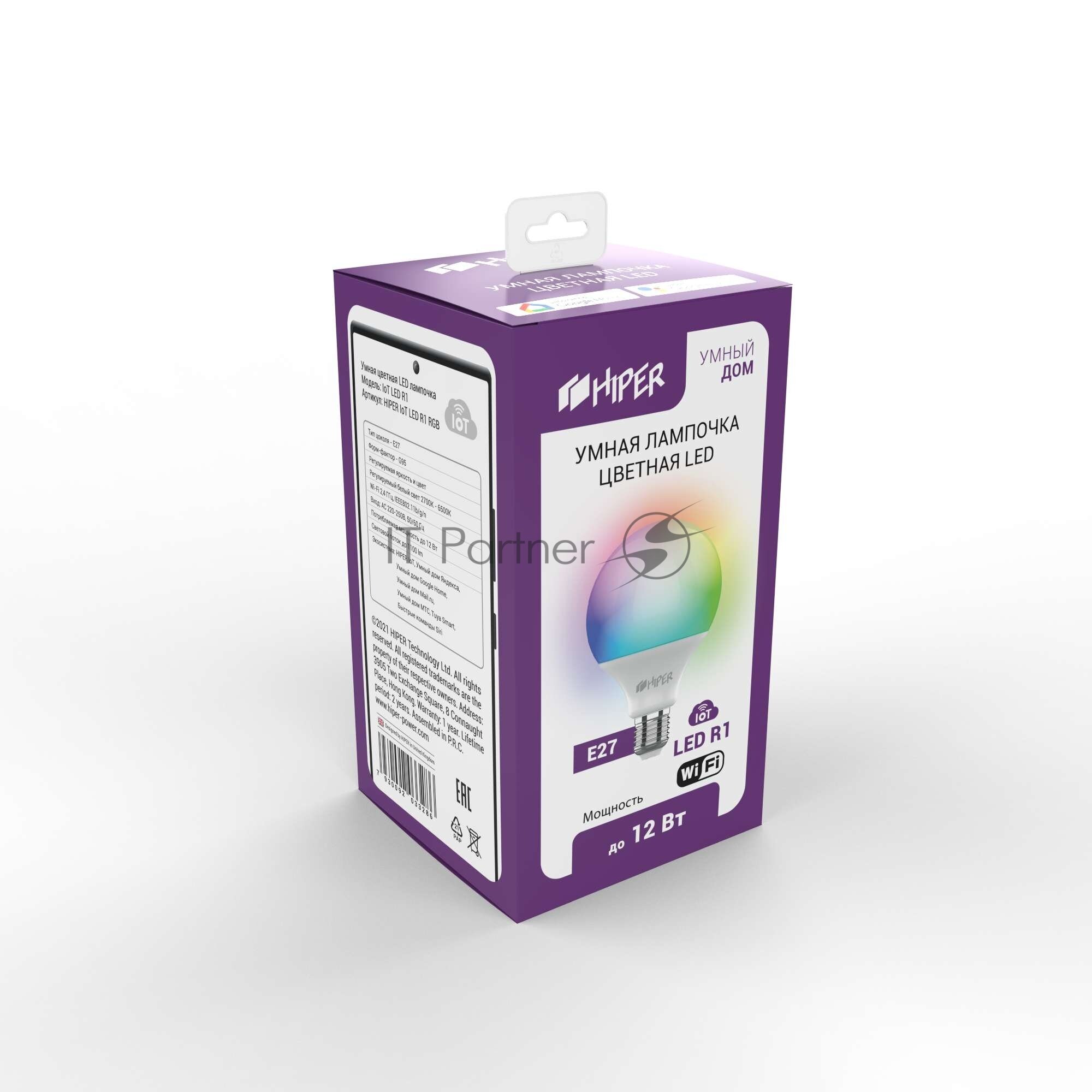 Лампа HIPER IoT R1 RGB IoT LED R1 умная цветная LED/Wi-Fi/Е27/плавная регулировка яркости/12Вт/2700K - 6500K/1020лм