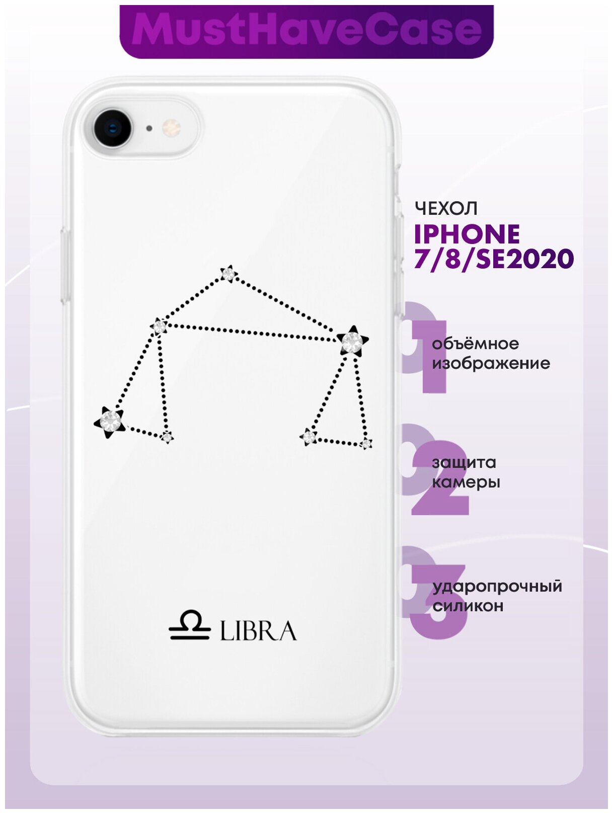 Купить Прозрачный силиконовый чехол с кристаллами Lux для iPhone 7/8/SE2020 Знак зодиака Весы Libra для Айфон 7/8/СЕ2020