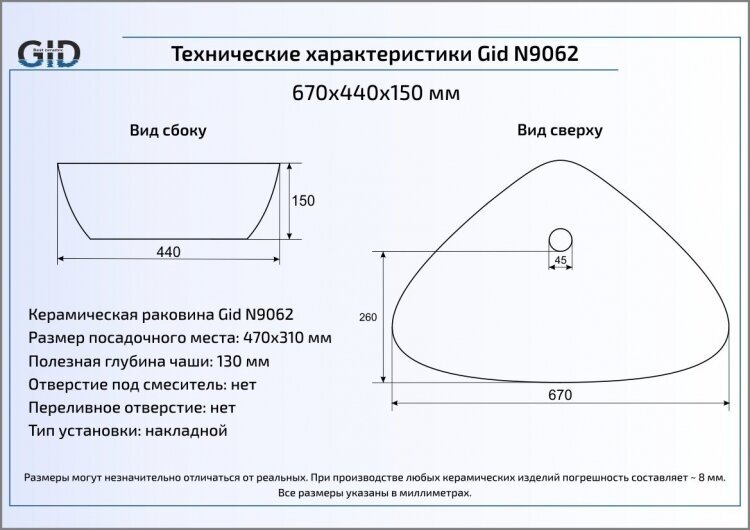 Ниже Вы можете прочитать отзывы на Керамическая накладная раковина для ванной Gid N9062, ознакомится с подробными характеристиками, посмотреть интересные обзоры и фотографии на Керамическая накладная раковина для ванной Gid N9062.
