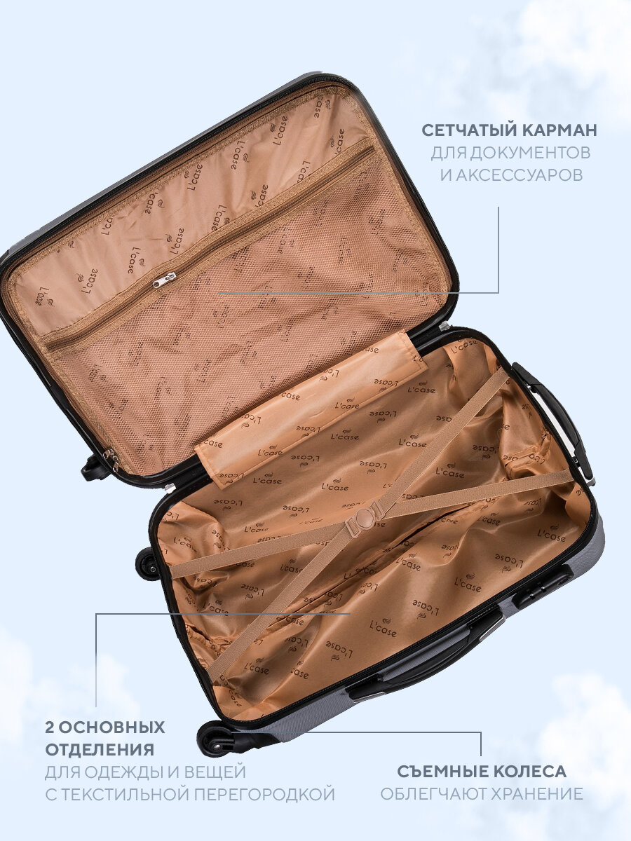 L'case Чемодан L'CASE Phatthaya M 66х43х26см со съемными колесами, серый