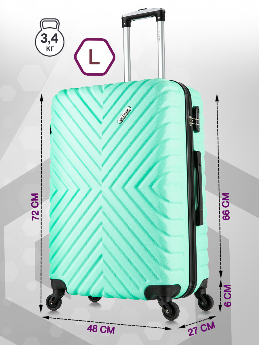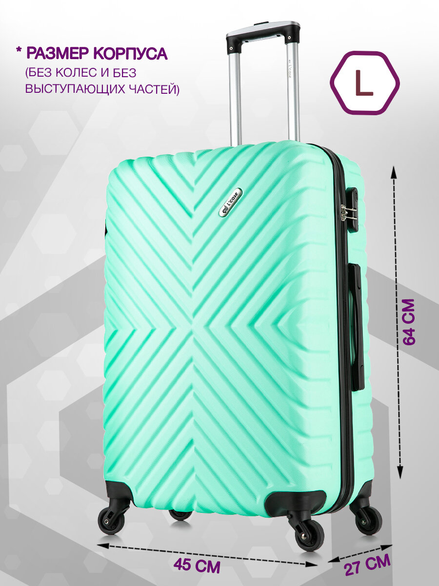 Чемодан L'Case New Delhi, размер L (ударопрочный ABS-пластик, съемные колеса, телескопическая ручка, кодовый замок-молния) черный
