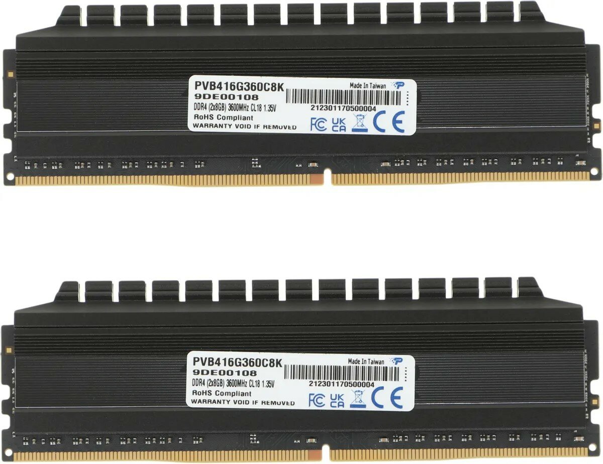 Оперативная память 16Gb (2x8Gb) PC4-28800 3600MHz DDR4 DIMM CL18 Patriot PVB416G360C8K