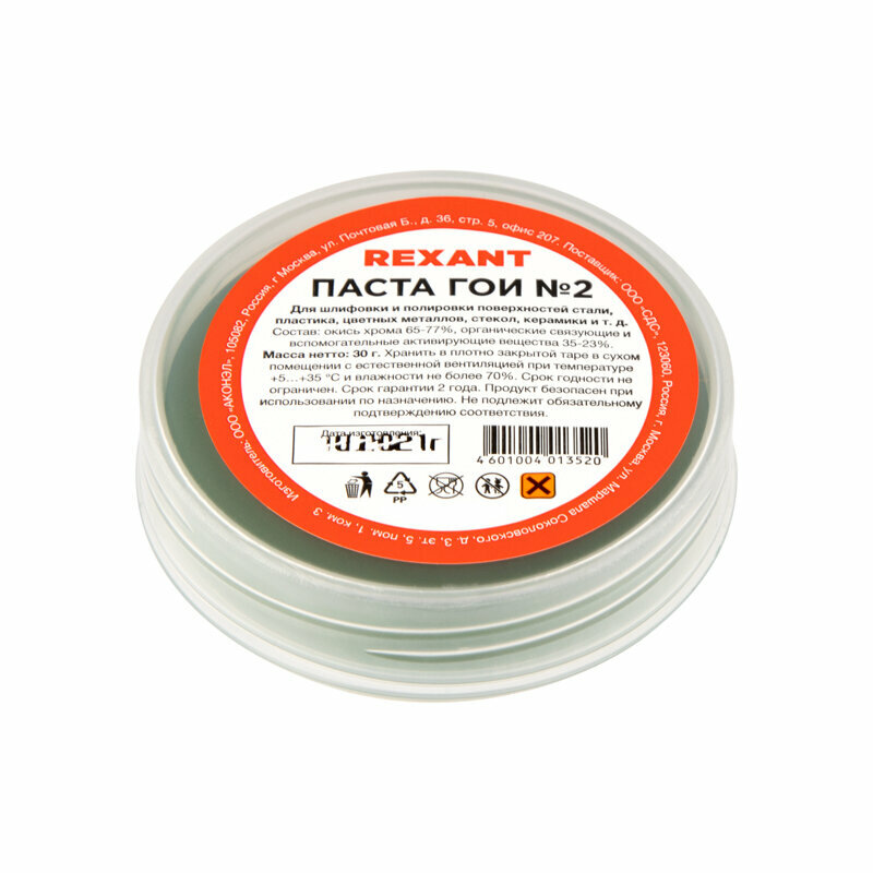 Полировальная паста ГОИ № 1 REXANT для финишной шлифовки и полировки поверхностей, банка 30 грамм