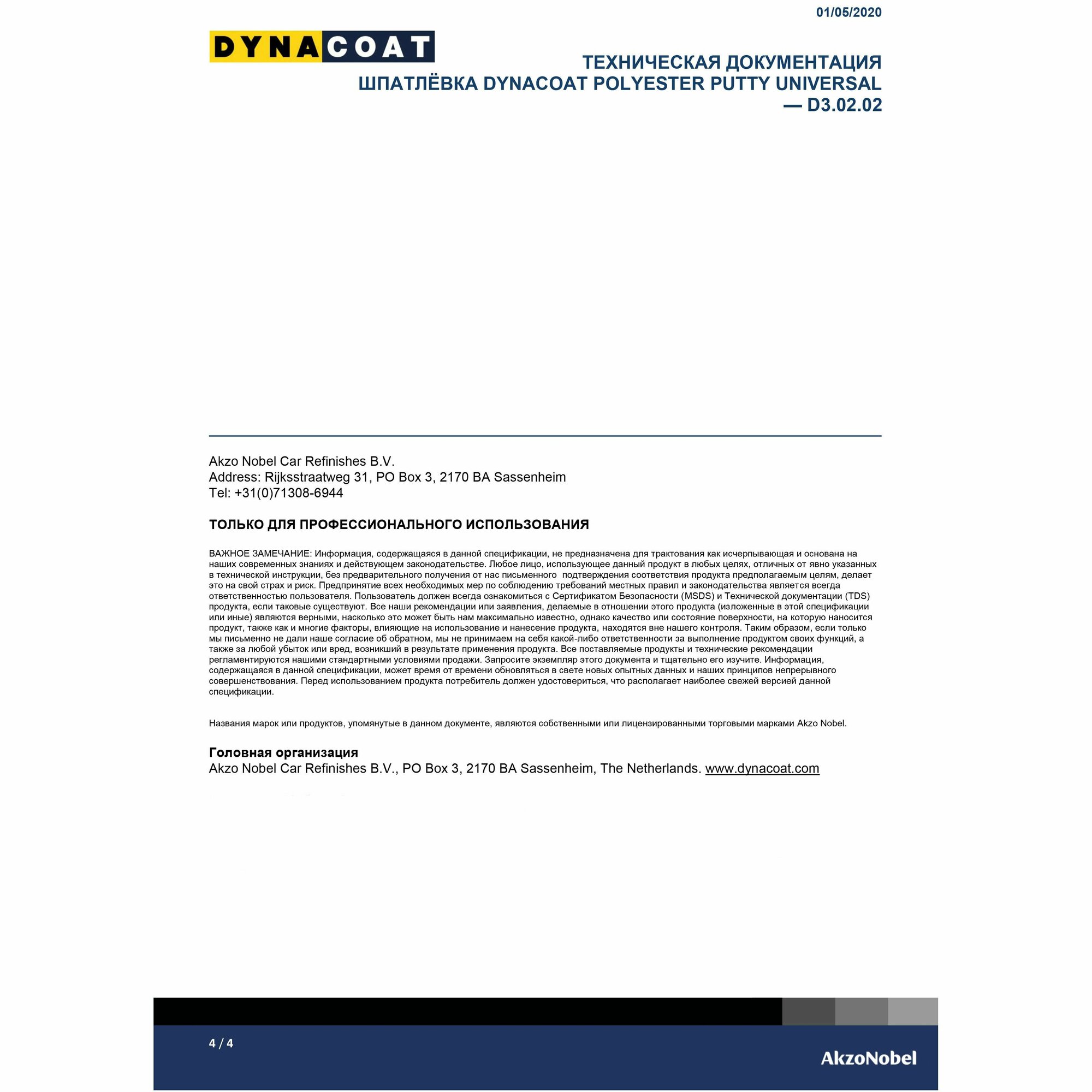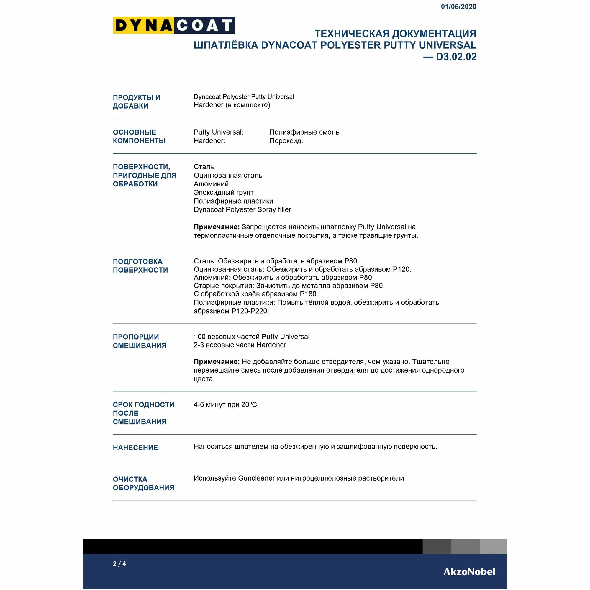 Шпатлевка Dynacoat Polyester Putty Universal универсалная 1850г интересное: