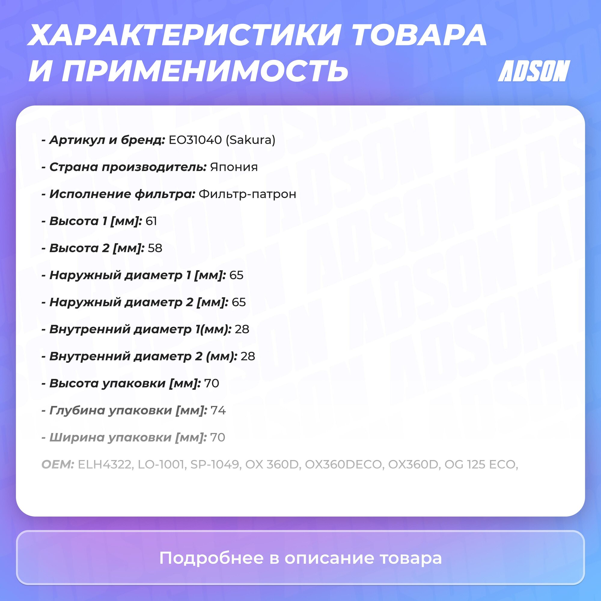 Фильтp Масл. Sakura Sakura арт. EO31040