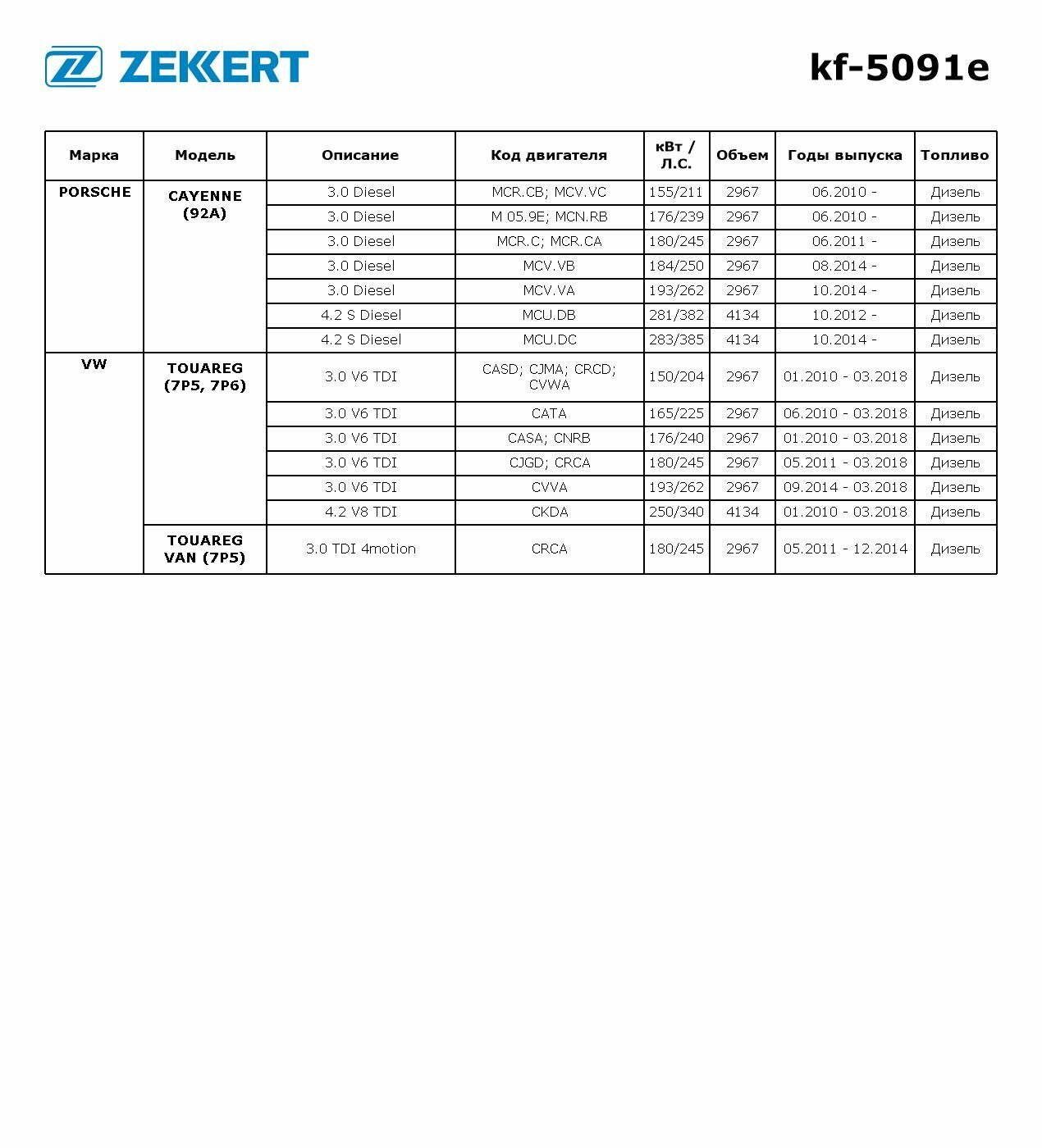 Купить ZEKKERT KF-5091E Фильтр топл. Eco Porsche Cayenne II 10- VW Touareg II 10- (Дизель)