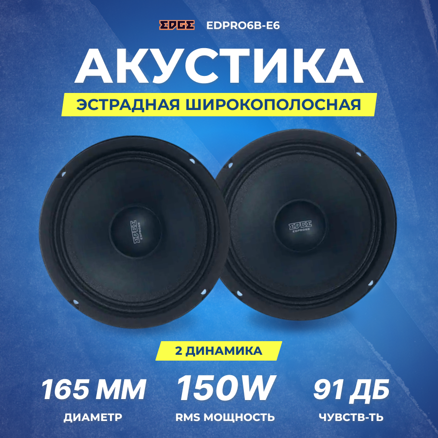 Колонки автомобильные EDGE EDPRO6B-E6, 16.5 см (6 1/2 дюйм.), комплект 2 шт. [edpro6b-e6(пара)]