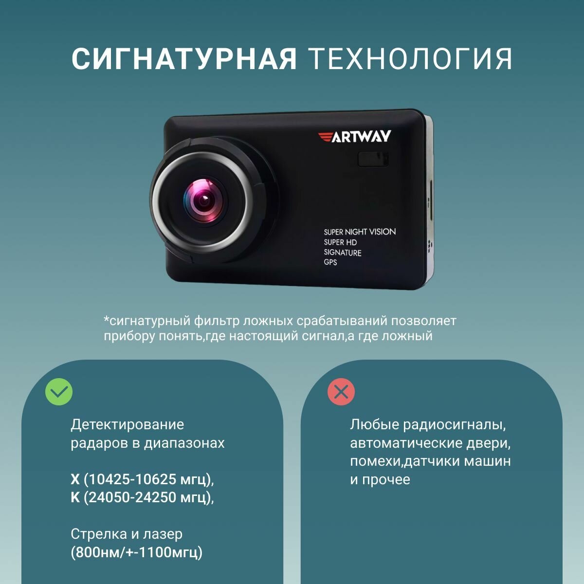 Видеорегистратор ARTWAY MD-110 COMBO ARTWAY MD-110 SIGNATURE SHD 3 в 1