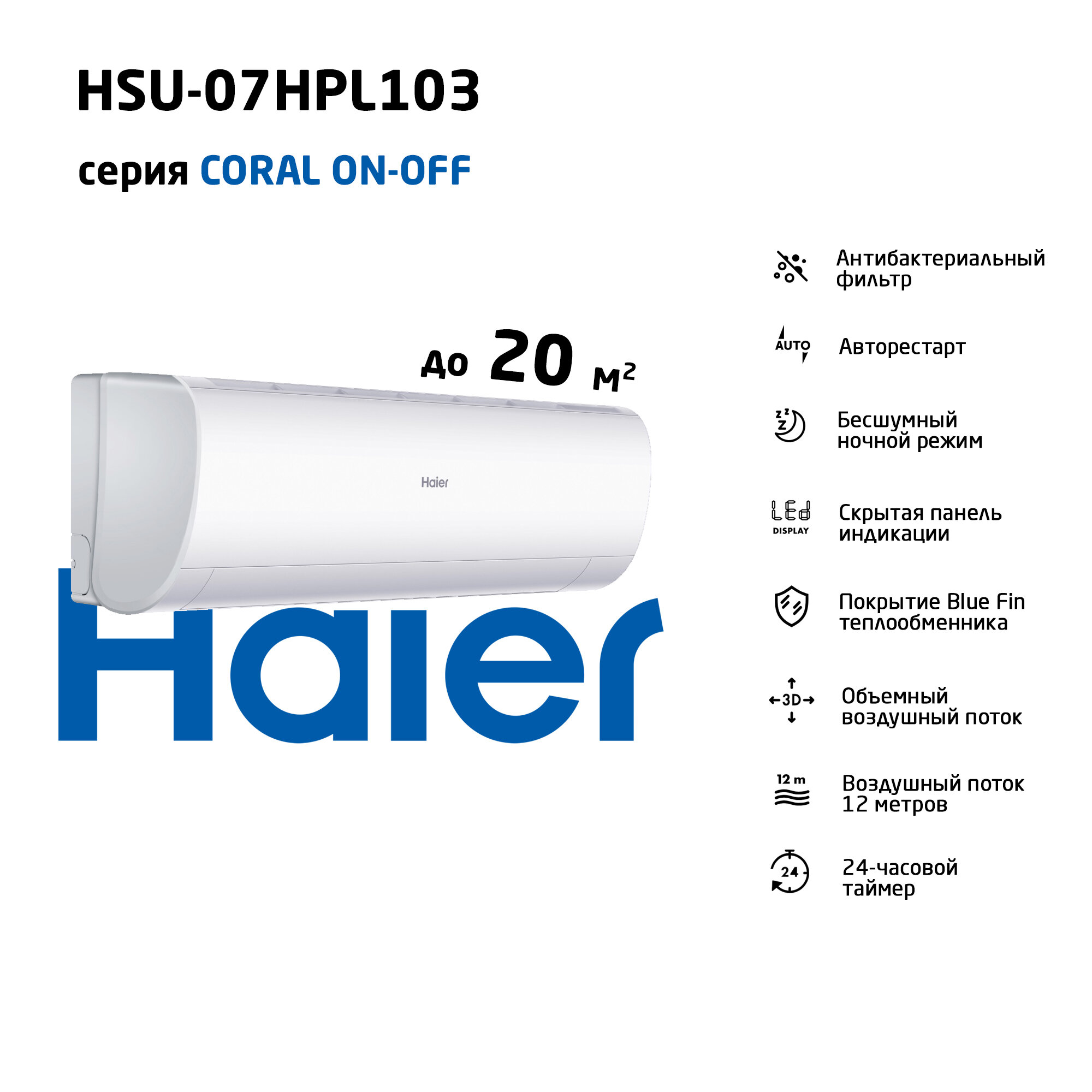 Сплит-система Haier Coral HSU-07HPL103/R3, для помещения до 20 кв.м.